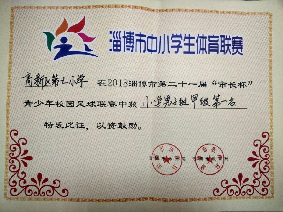 | 高新区第七小学获得淄博市第21届市长杯足球联赛冠军 | |||